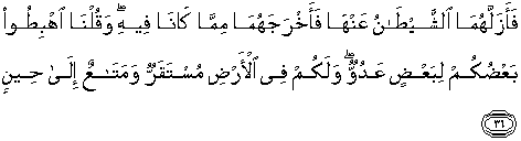 Allah menyuruh mereka turun ke dunia. Yang dimaksud dengan syaitan di