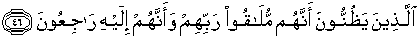 46. (yaitu) orang-orang yang meyakini, bahwa mereka akan menemui Tuhannya, dan bahwa mereka akan kembali kepada-Nya.