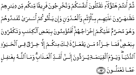 85. Kemudian kamu (Bani Israil) membunuh dirimu (saudaramu