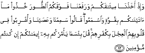 93. Dan (ingatlah), ketika Kami mengambil janji dari kamu dan Kami