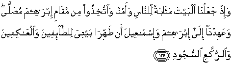 Dalam riwayat lain dikemukakan bahwa Umar bin Khaththab ra lewat di maqam Ibrahim AS bersama Rasulullah SAW, dan ia bertanya: "Wahai Rasulullah, apakah kita tidak berdiri shalat di tempat shalatnya kekasih Tuhan?" Rasulullah SAW menjawab: "Benar." Kemudian Umar berkata: "Apakah kita tidak jadikan tempat shalat?" Tiada lama kemudian turunlah ayat tersebut di atas (S. 2: 125) (Menurut dhahirnya, turunnya ayat ini pada hajjatul