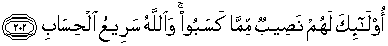 202. Mereka itulah orang-orang yang mendapat bahagian daripada yang mereka usahakan; dan Allah sangat cepat perhitungan-Nya.