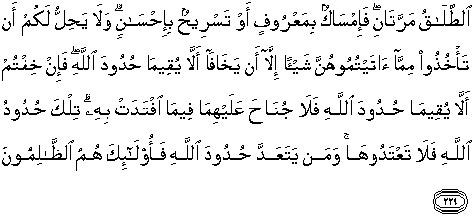 229. Talak (yang dapat dirujuki) dua kali. Setelah itu boleh rujuk