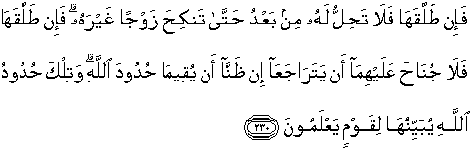 230. Kemudian jika si suami mentalaknya (sesudah talak yang kedua),
