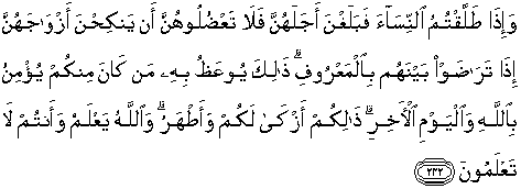 232. Apabila kamu mentalak isteri-isterimu, lalu habis masa iddahnya,