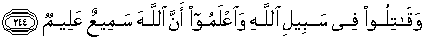 244. Dan berperanglah kamu sekalian di jalan Allah, dan ketahuilah sesungguhnya Allah Maha Mendengar lagi Maha Mengetahui.