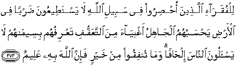 273. (Berinfaqlah) kepada orang-orang fakir yang terikat (oleh jihad)