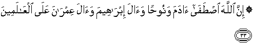 33. Sesungguhnya Allah telah memilih Adam, Nuh, keluarga Ibrahim dan keluarga 'Imran melebihi segala umat (di masa mereka masing-masing),
