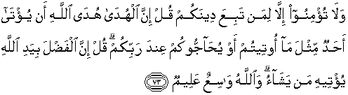 73. Dan janganlah kamu percaya melainkan kepada orang yang
