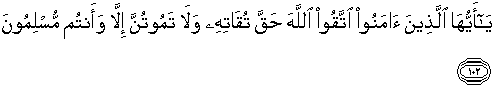 102. Hai orang-orang yang beriman, bertakwalah kepada Allah sebenar-benar takwa kepada-Nya; dan janganlah sekali-kali kamu mati melainkan dalam keadaan beragama Islam.