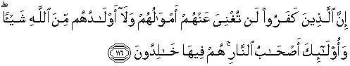 116. Sesungguhnya orang-orang yang kafir baik harta mereka maupun