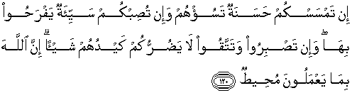 120. Jika kamu memperoleh kebaikan, niscaya mereka bersedih hati,