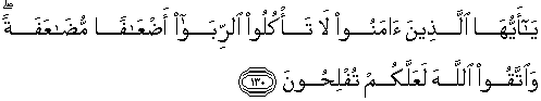 130. Hai orang-orang yang beriman, janganlah kamu memakan riba
