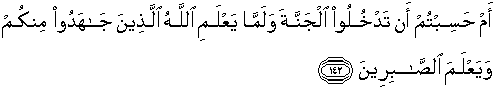 142. Apakah kamu mengira bahwa kamu akan masuk surga, padahal