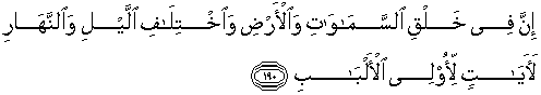 190. Sesungguhnya dalam penciptaan langit dan bumi, dan silih bergantinya malam dan siang terdapat tanda-tanda bagi orang-orang yang berakal,