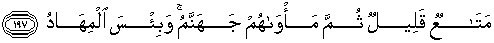 197. Itu hanyalah kesenangan sementara, kemudian tempat tinggal mereka ialah Jahannam; dan Jahannam itu adalah tempat yang seburuk-buruknya.