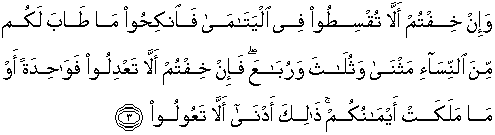 3. Dan jika kamu takut tidak akan dapat berlaku adil terhadap