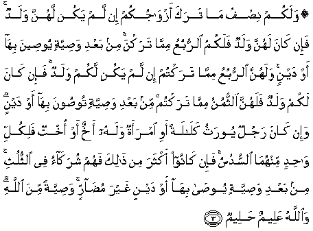 12. Dan bagimu (suami-suami) seperdua dari harta yang ditinggalkan