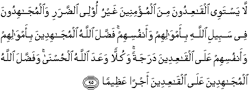 Perbedaan antara orang yang berjihad dan yang tidak berjihad karena uzur, dengan yang tidak berjihad ![]() |