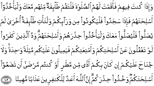 [346]. Cara sembahyang khauf seperti tersebut pada ayat 102 ini