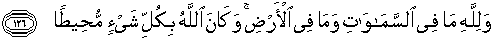 126. Kepunyaan Allah-lah apa yang di langit dan apa yang di bumi, dan adalah (pengetahuan) Allah Maha Meliputi segala sesuatu.