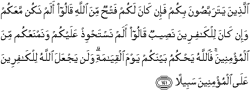 kami turut memenangkanmu[363], dan membela kamu dari orang-orang mukmin?" Maka Allah akan memberi keputusan di antara