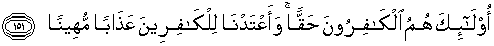 151. merekalah orang-orang yang kafir sebenar-benarnya. Kami telah menyediakan untuk orang-orang yang kafir itu siksaan yang menghinakan.