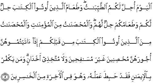 5. Pada hari ini dihalalkan bagimu yang baik-baik. Makanan