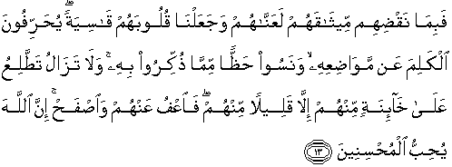 13. (Tetapi) karena mereka melanggar janjinya, Kami kutuki mereka,