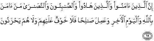 69. Sesungguhnya orang-orang mukmin, orang-orang Yahudi, Shabiin dan orang-orang Nasrani, siapa saja