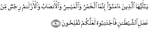 90. Hai orang-orang yang beriman, sesungguhnya (meminum) khamar,