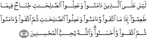 93. Tidak ada dosa bagi orang-orang yang beriman dan mengerjakan amalan