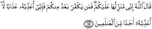 115. Allah berfirman: "Sesungguhnya Aku akan menurunkan hidangan itu