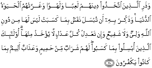 70. Dan tinggalkan lah orang-orang yang menjadikan agama[485] mereka