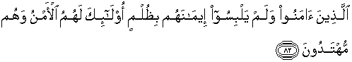 82. Orang-orang yang beriman dan tidak mencampuradukkan iman mereka dengan kezaliman (syirik), mereka itulah yang mendapat keamanan dan mereka itu adalah orang-orang yang mendapat petunjuk.