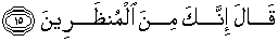 15. Allah berfirman: "Sesungguhnya kamu termasuk mereka yang diberi tangguh."