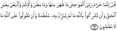 33. Katakanlah: "Tuhanku hanya mengharamkan perbuatan yang keji,