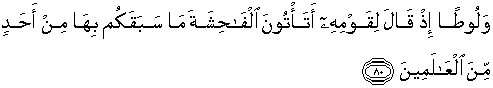 80. Dan (Kami juga telah mengutus) Luth (kepada kaumnya). (Ingatlah)