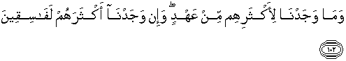 102. Dan Kami tidak mendapati kebanyakan mereka memenuhi janji. Sesungguhnya Kami mendapati kebanyakan mereka orang-orang yang fasik.