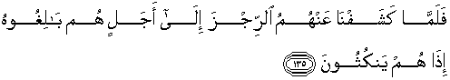 135. Maka setelah Kami hilangkan azab itu dari mereka hingga batas waktu yang mereka sampai kepadanya, tiba-tiba mereka mengingkarinya.