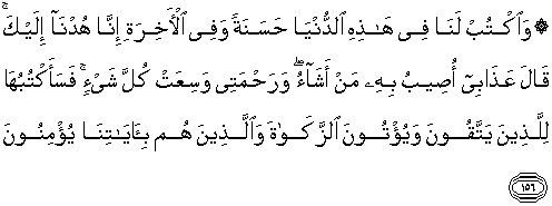 156. Dan tetapkanlah untuk kami kebajikan di dunia ini dan di