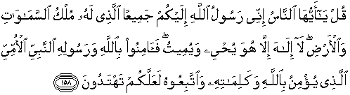 158. Katakanlah: "Hai manusia sesungguhnya aku adalah utusan Allah