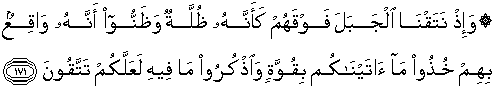 171. Dan (ingatlah), ketika Kami mengangkat bukit ke atas mereka