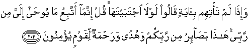 203. Dan apabila kamu tidak membawa suatu ayat Al Quran kepada