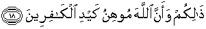 18. Itulah (karunia Allah yang dilimpahkan kepadamu), dan sesungguhnya Allah melemahkan tipu daya orang-orang yang kafir.