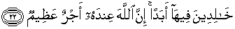 22. mereka kekal di dalamnya selama-lamanya. Sesungguhnya di sisi Allah-lah pahala yang besar.