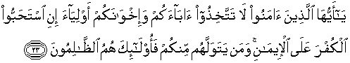 23. Hai orang-orang beriman, janganlah kamu jadikan bapa-bapa dan