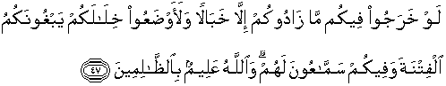 47. Jika mereka berangkat bersama-sama kamu, niscaya mereka tidak
