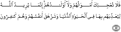55. Maka janganlah harta benda dan anak-anak mereka menarik hatimu.