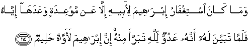 114. Dan permintaan ampun dari Ibrahim (kepada Allah) untuk bapaknya